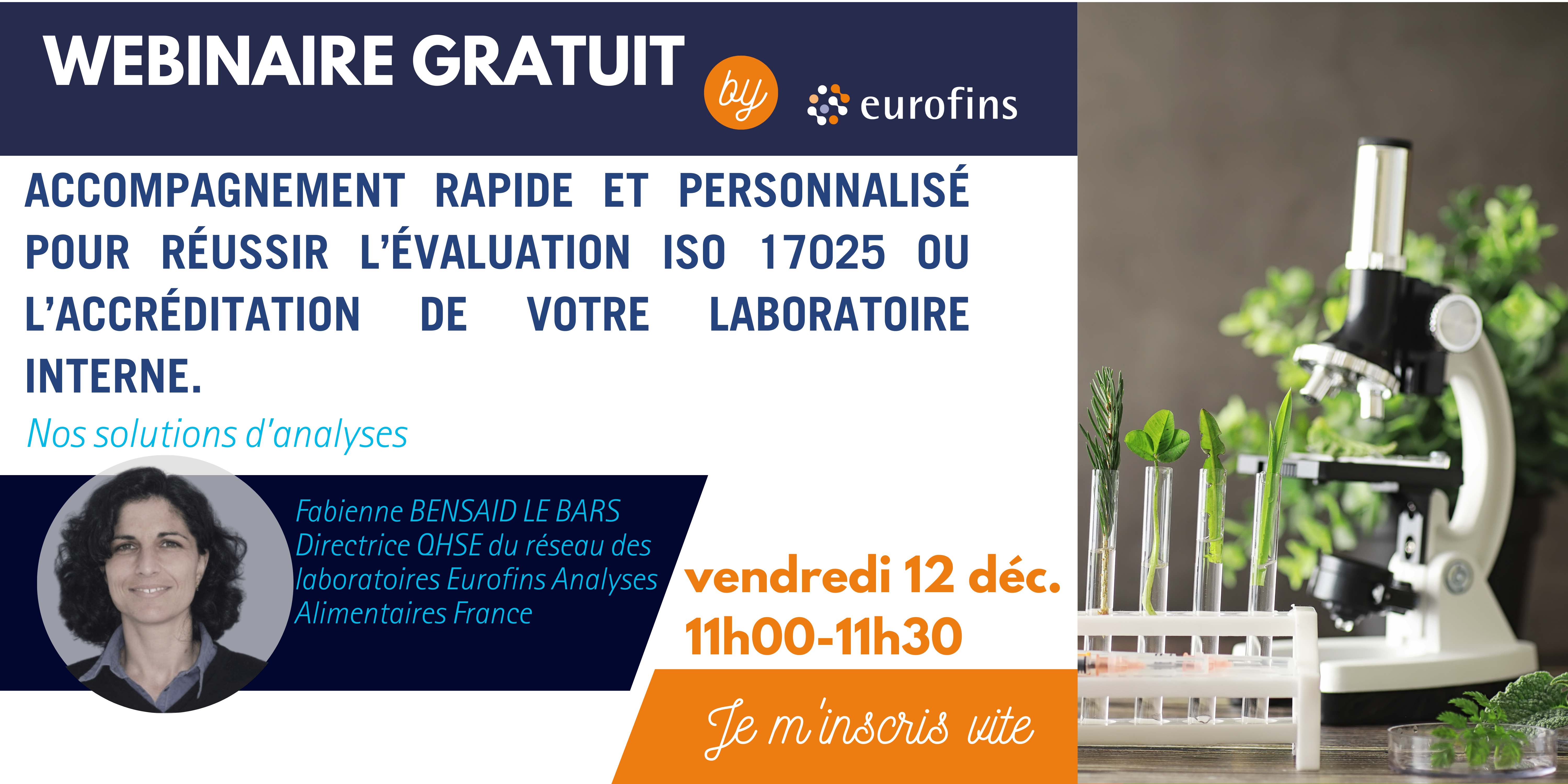 Webinaire du 12/12/2025 - "Accompagnement rapide et personnalisé pour réussir l’évaluation ISO 17025 ou l’accréditation de votre laboratoire interne."