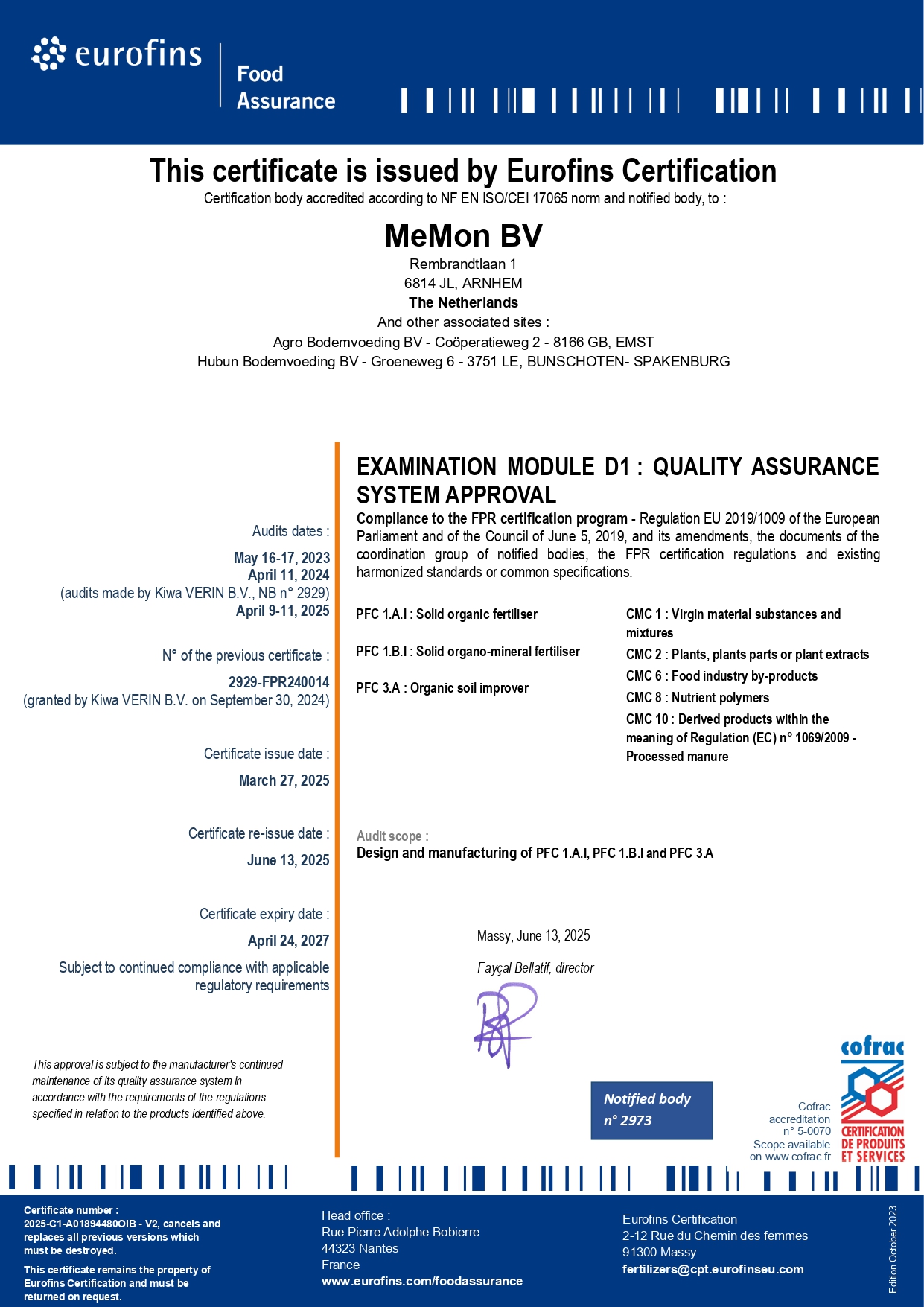 >> Certificat MeMon BV