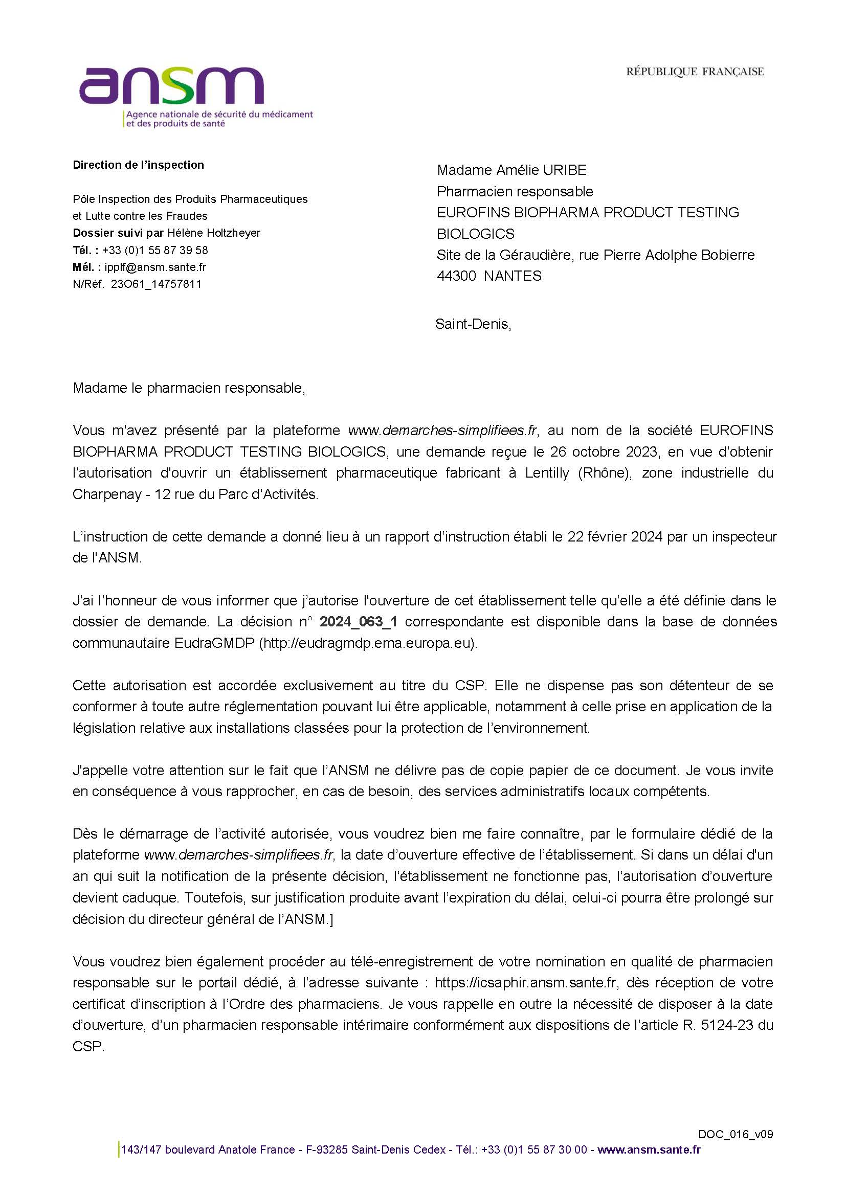 Eurofins BioPharma Product Testing Biologics Lentilly